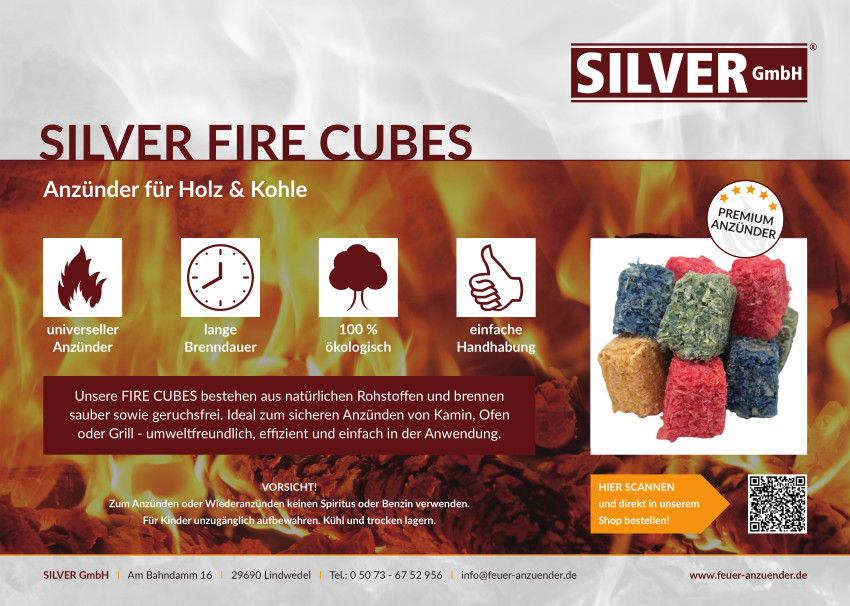 Mit den SILVER Fire Cubes entfacht jedes Feuer schnell, sauber und sicher. Ein praktischer Helfer für alle, die sich das Entzünden erleichtern und gleichzeitig ein nachhaltiges, gesundes Feuer genießen möchten.