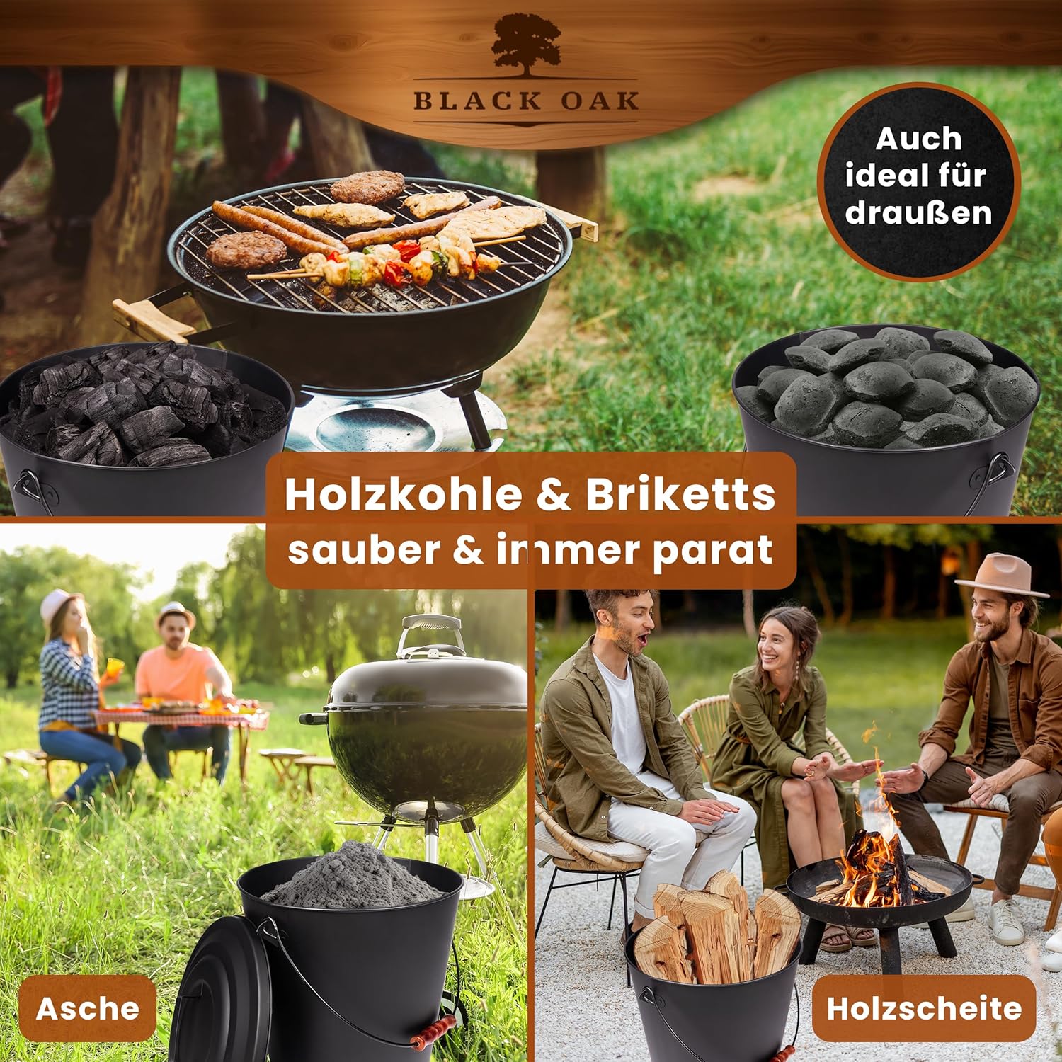Produktinformationen "BLACK OAK Asche & Kohle Eimer SANTORINI 25 Liter mit Schaufel & Handfeger"
