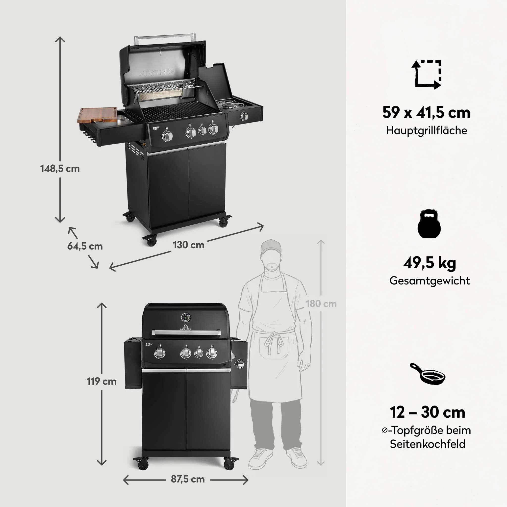 Produktinformationen "BURNHARD FRED Deluxe Gasgrill 3 Brenner Series 4 Black Edition mit Gusseisenrost Maximale BBQ Power vielseitig modern"