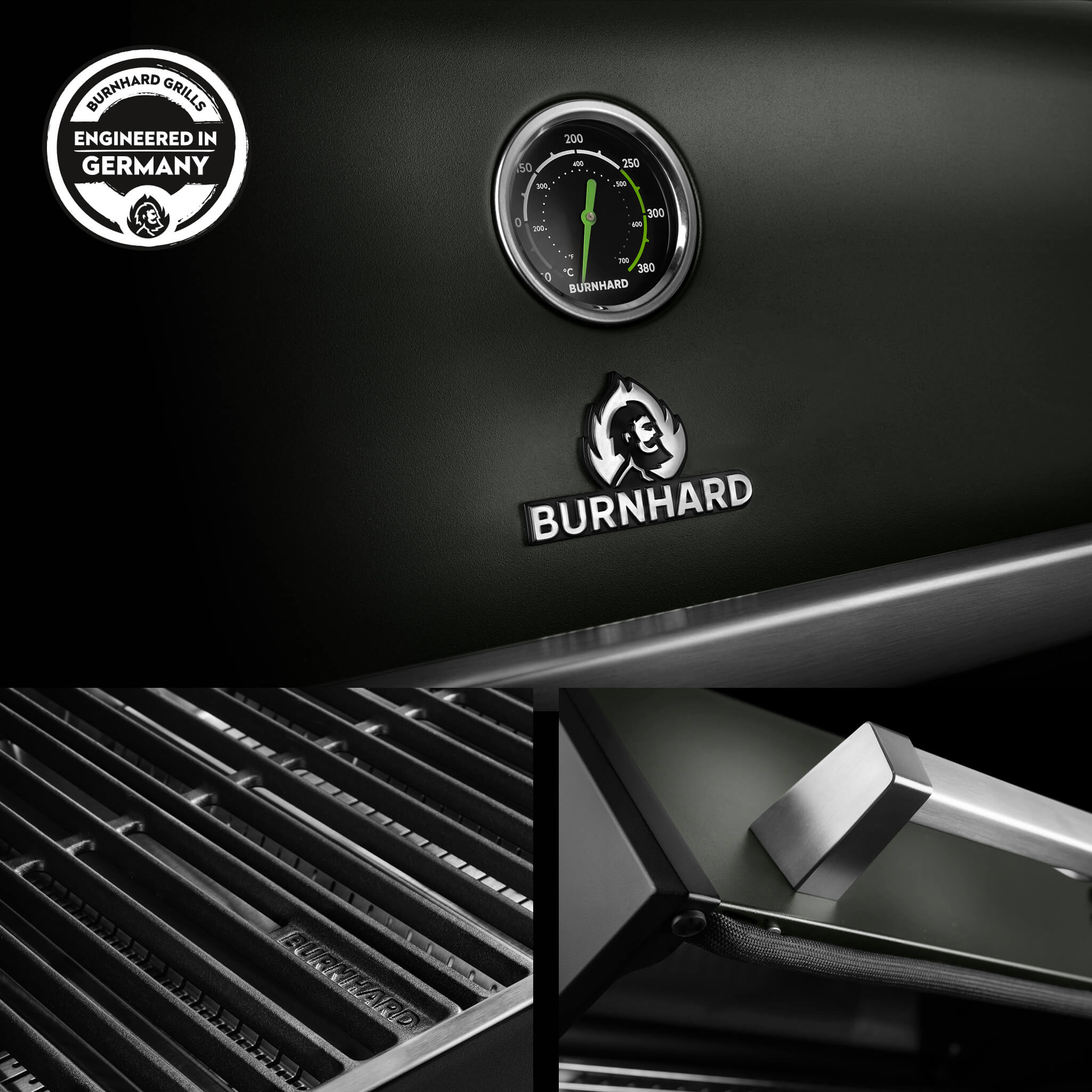 Produktinformationen "BURNHARD FRED Deluxe Gasgrill 3 Brenner Series 4 Green Edition mit Gusseisenrost Maximale BBQ Power modern nachhaltig"