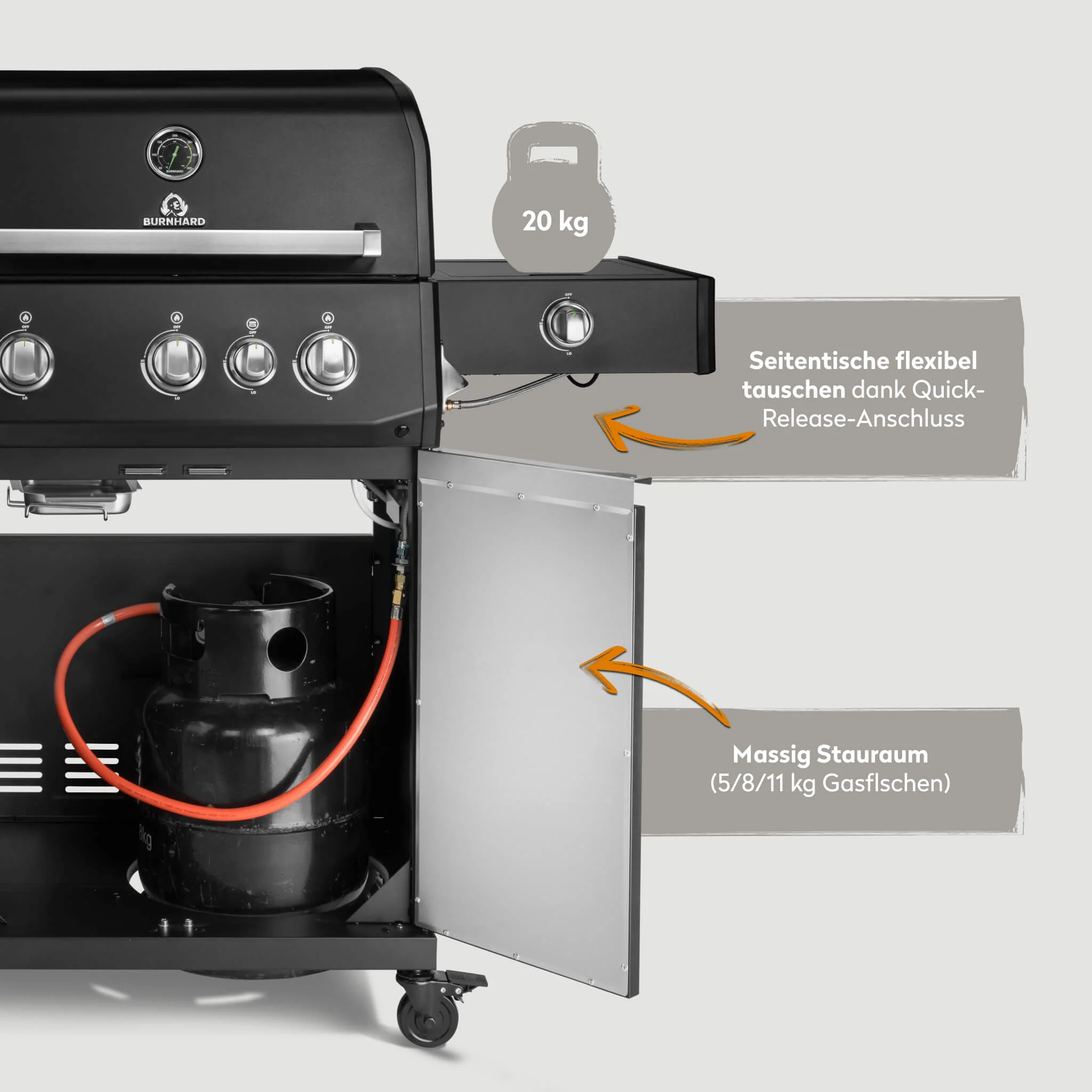 Du hast die Wahl zwischen klassischen Edelstahl Stabbrennern oder langlebigen Longlife Premium Gussbrennern. Beide Varianten sorgen für eine gleichmäßige Hitzeverteilung und zuverlässige Leistung auch bei intensiver Nutzung.