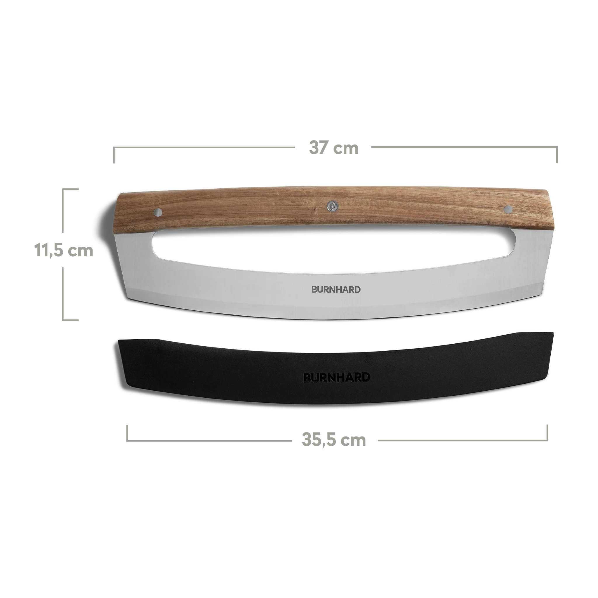 Set-Inhalte | Pizzawender, Teigspachtel, Akazienholz-Pizzabrett, Wiegemesser |