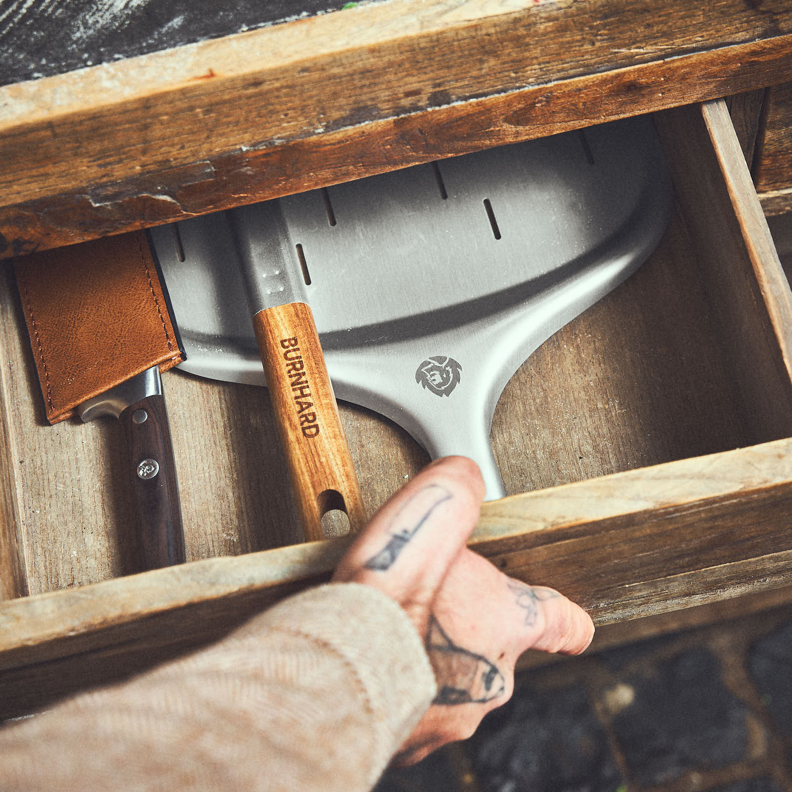 - Perforierte Schaufel: Die feine Perforierung reduziert die Auflagefläche und lässt überschüssiges Mehl oder Semola einfach durchfallen. Das minimiert verbrannte Stellen am Pizzaboden.