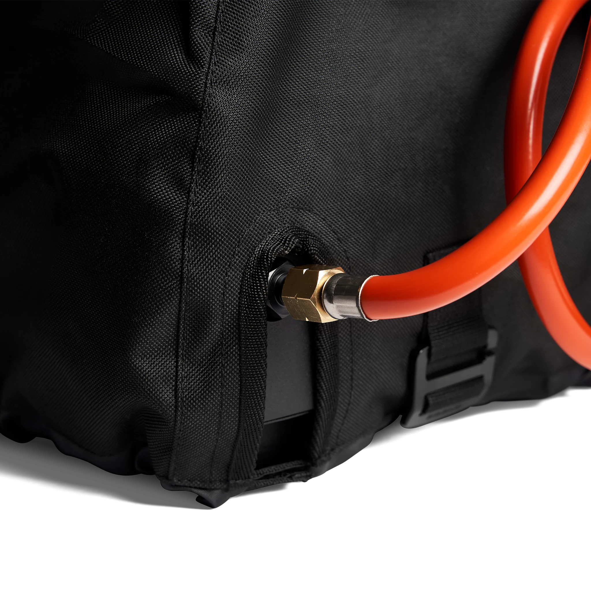 Die integrierte Fixierung für den Gasschlauch verhindert Beschädigungen beim Transport. Mit dem praktischen Kordelzug kannst du die Tasche fest verschließen und optimal anpassen.