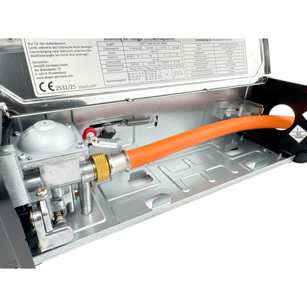 - Anschluss an größere Gasflaschen über Adapterschlauch möglich