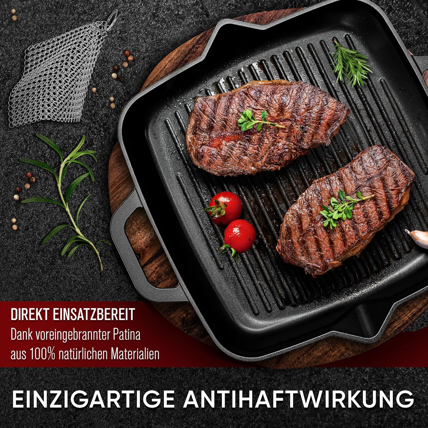 Produktinformationen "GUSSKÖNIG 26cm quadratische Gusseisenpfanne Pfanne Gusseisen - Grillpfanne Induktion"