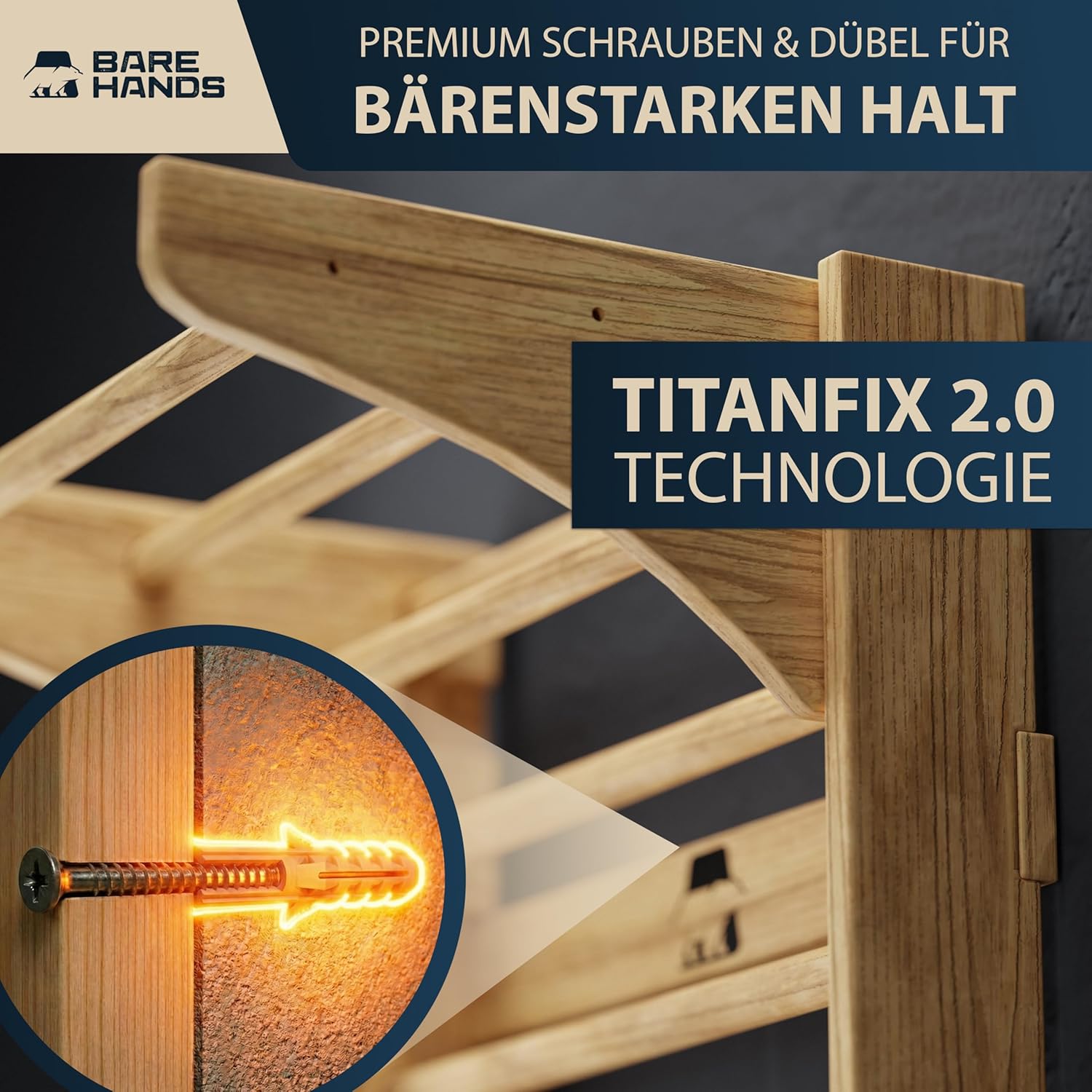 Dank der stabilen Wandmontage lässt sich die Sprossenwand platzsparend im Wohnzimmer Fitnessraum oder Kinderzimmer integrieren. Die natürliche hellbraune Holzfarbe fügt sich harmonisch in jeden Wohnbereich ein. Das Montagematerial ist im Lieferumfang enthalten. Zusätzlich stehen Online Anleitungen und Trainingsinhalte zur Verfügung um den Aufbau zu erleichtern.