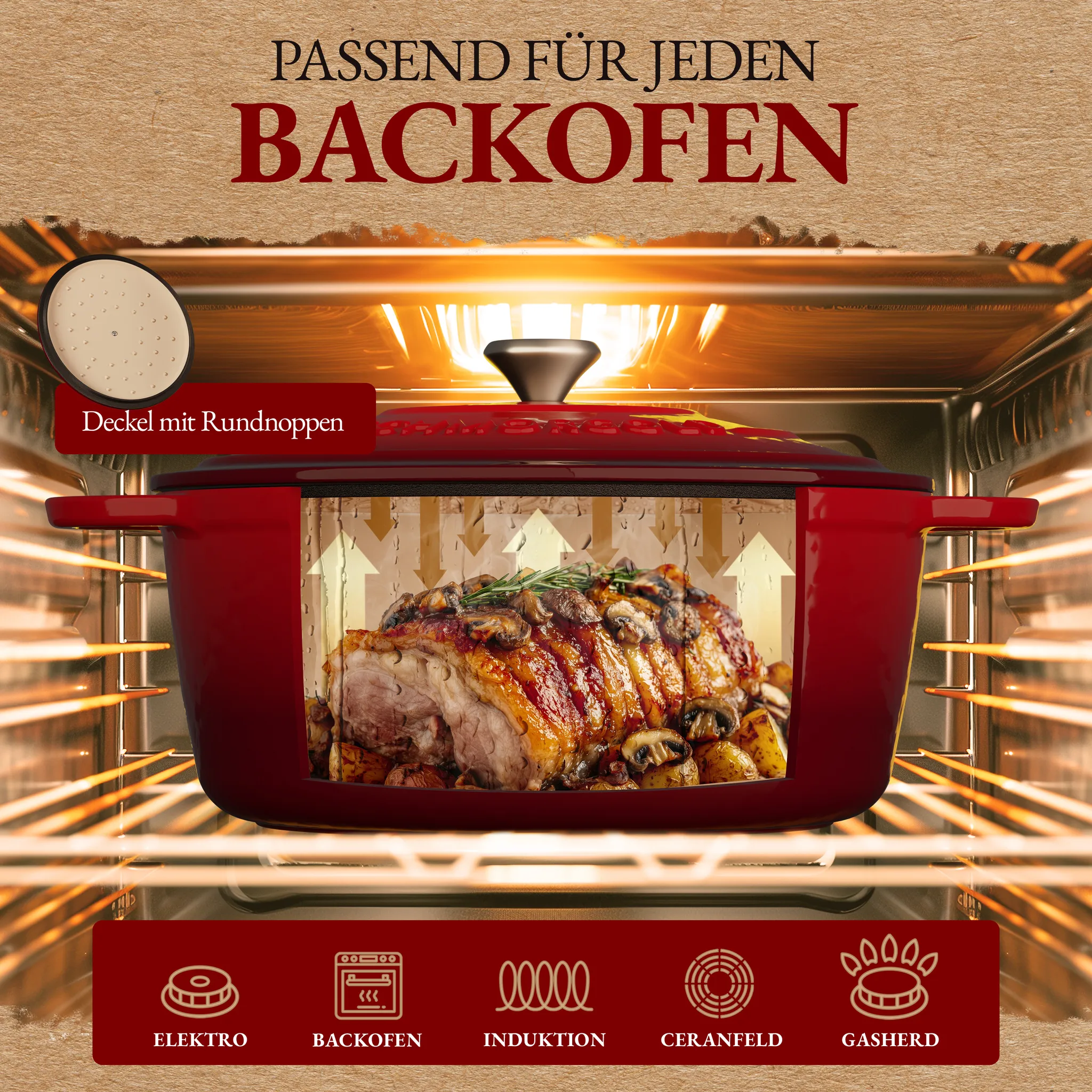 SCHMORGOLD Emaillierter Gusseisen Schmortopf mit Deckel - 26 cm - 4,7 Liter