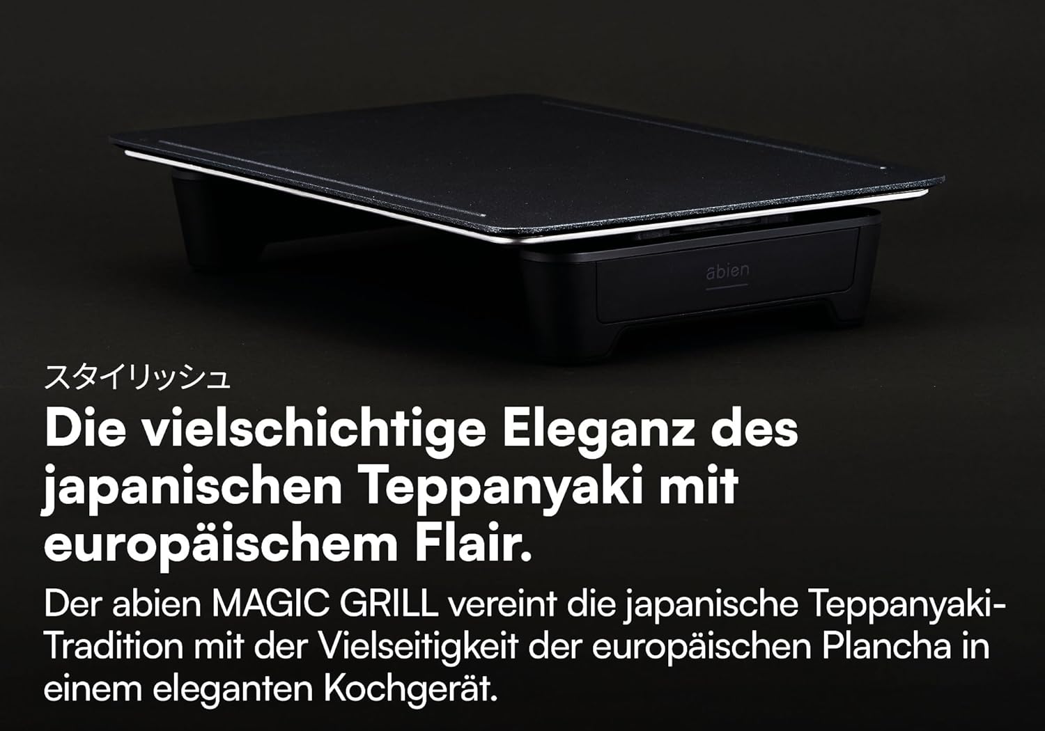 Der abien MAGIC GRILL kombiniert die japanische Teppanyaki-Kunst mit der Flexibilität der europäischen Plancha in einem stilvollen Kochgerät. Seine hochmoderne Grillplatte sorgt für eine gleichmäßige, präzise Wärmeverteilung – ideal für eine abwechslungsreiche Küche bei minimalem Aufwand.